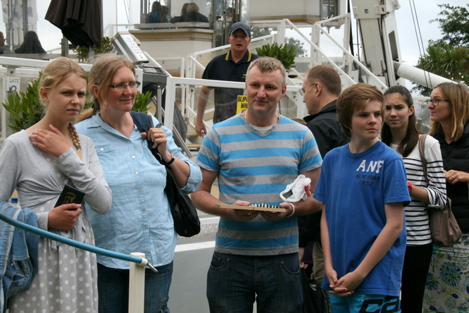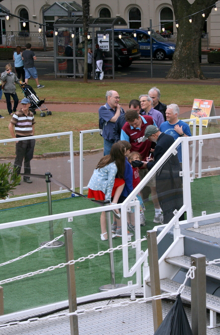 The last time we came to Torquay, in 2009, the fun thing to do on the sea-front was a chess match in the helium balloon that was moored near the venue. This consisted of a 2-game match between Jack Rudd (Devon) and Andrew Greet (Cornwall) - one game played on the way up to 400 ft above the promenade and a return game on the way down. This was filmed, with interviews of the contestants by the splendid James Essinger, and the video posted on YouTube, still viewable in 2 parts (type in “chess at 400 ft.”).