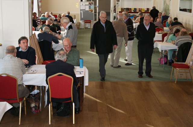 Preparations for this year’s Seniors Congress at the Royal Beacon Hotel, Exmouth, were going quite smoothly up to the last few minutes before the scheduled start at 1 p.m. With c. 30 minutes to go, at which point little gremlins started to appear. Players who thought they’d entered, but hadn’t, turned up, while some who had entered pulled out at the last minute (one had been rushed into hospital for a major operation [unstandable] while another had just become a grandfather [somewhat less so]). One minute the overall numbers were odd, requiring a bye, then an unexpected entry arrived, evening things up, then another withdrew, bringing a bye back into the equation. Another player arrived 45 minutes late, thinking he was early for a 2 p.m. start. Who’d be a controller at a Seniors Convention?! but Ewart Smith took it all in his stride.