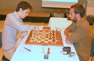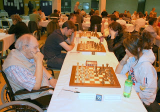 So things went as predicted - more or less. On Bd. 1, Gary Lane showed his hand by offering a draw after move 6. Howell declined, perhaps hoping to go out with a further win, but when the position soon became a bit turgid and would have required a lot of time and effort to resolve, he clearly came to the conclusion that the easiest option was probably the best after all. Furthermore, he was due to play in the 1st round of the Staunton Memorial in London the next afternoon, so it made good sense to conserve his energy.