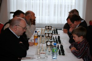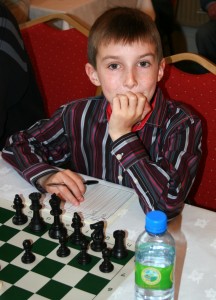 Also spotted a tiny 9 year old playing in the Minor with an interested-looking man sitting nearby, whom I correctly guessed was his father. The boy was Theo Slade of Bude in Cornwall, near its northern border with Devon, who is starting to attract attention for his ability and mature attitude to the game. In the absence of a structure for junior chess chess in Cornwall, he has been drawn into Devon’s junior system, and already plays on Bd. 4 for their U-11s. He played in the British Championships at Torquay last August and was Runner-Up in the British Under-8 Championship. He receives weekly coaching from Exeter’s Dave Regis via the internet and Skype.