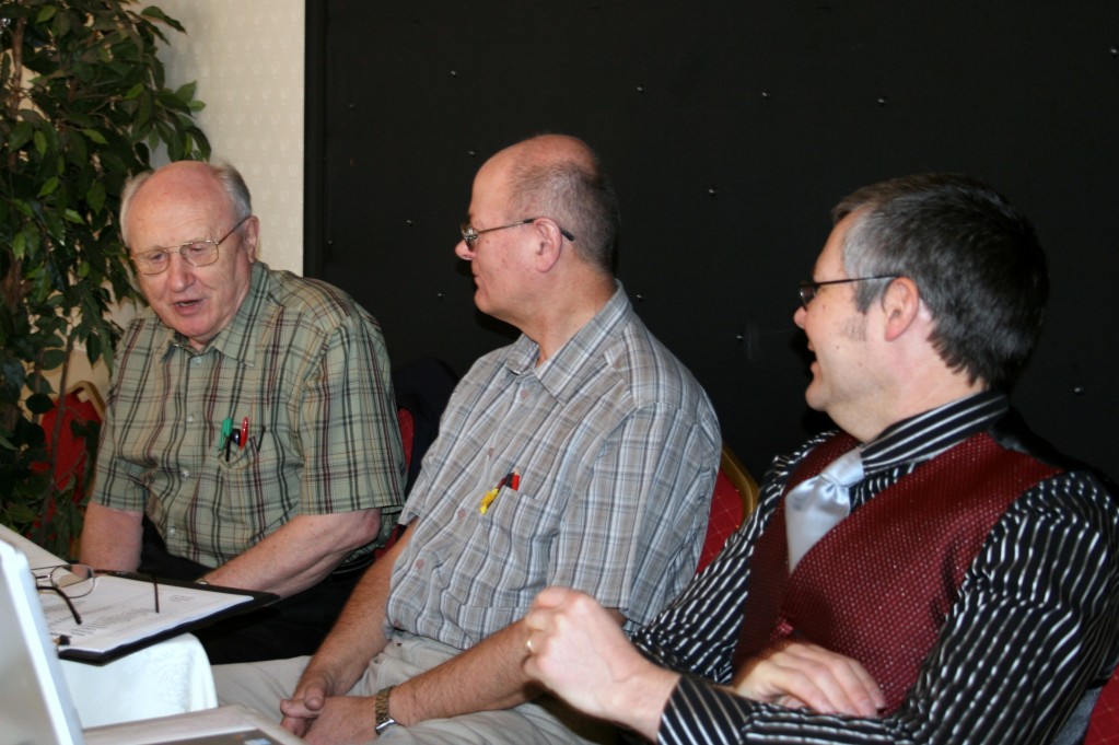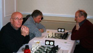 The Arbiters looked pretty laid back as they waited for the start of play; (l-r) Ewart Smith (ECF Senior Arbiter) i/c of the Open, with BCF Arbiters Tony Tatam (Major) and John Constable (Minor).