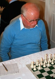 After an hour’s play, Alan Primmett, one of the regular senior players, collapsed at the board, falling to the floor and vomiting. The ambulance was called and he was taken straight to Exeter Hospital. Apart from being partially sighted, he is known to be diabetic, and it was felt this might have been a diabetic coma.