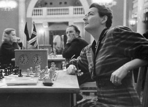 Rowena had qualified for the Women’s Zonal Tournament, part of the 22nd FIDE Congress held in Venice 5th – 11th July. The top two places would go on to compete in the Candidates Tournament in Moscow, the other English player being Eileen Tranmer. She played well in the early stages, reaching 3½/4, but was later hampered by a series of adjourned games, which made the run-in a bit nerve-wracking. On one occasion, for example, she was playing till half past midnight to complete one round, and had to be back in the playing hall for the next round at 9 a.m. Notwithstanding the tight schedules, trips out were organised, and there were opportunities to fraternise with Golombek, Wade and Barry Wood who were involved in the FIDE conference going on at the same time in the same building. However, she finally qualified for Moscow along with Fenny Heemskirk of Holland.