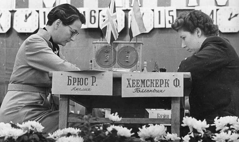 About 4 weeks later, on 19th June she was involved in the Anglo-Soviet Radio Chess match. It was a daunting prospect, as the Soviet team comprised twelve legends, (in order) Botvinnik, Keres, Smyslov, Boleslavsky, Flohr, Kotov, Bronstein, Bondarevsky, Lilienthal and Ragosin, and with Vera Byelova and Ludmila Rudenko as the two lady players. Rowena’s lady partner was Eileen Tranmer, principal clarinettist at Sadlers’ Wells.