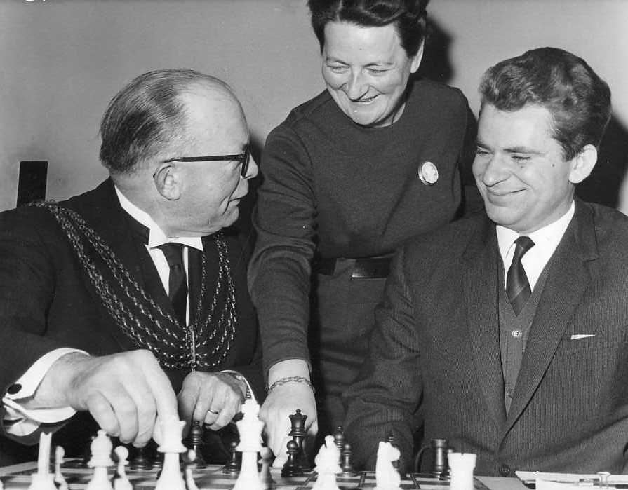 The Plymouth Club had always sought to put on simultaneous exhibitions against the great players of the day, from Blackburne in 1888, and including, among others, Lasker, Frank Marshall, Mir Sultan Khan and Koltanowski and in January 1966 it was the turn of Boris Spassky. At home Rowena kept a special chess board the back of which was signed by all the great players she had met, from Capablanca onwards. Spassky duly added his signature on this occasion.
