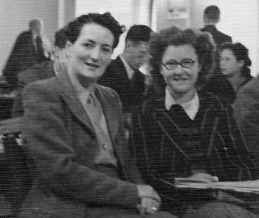 A stern-looking Rowena offers advice to one of the juniors at the WECU Congress, Easter 1951, in the analysis room at the Penolver Hotel, Newquay.