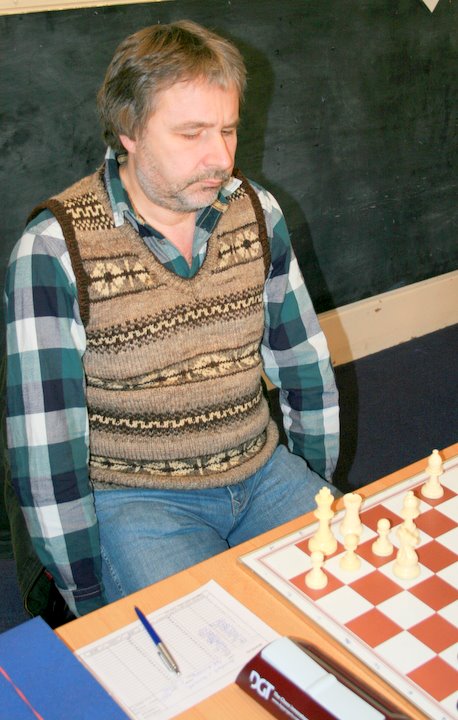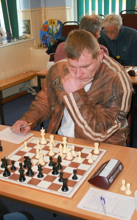 The first of these was on a clubnight (Wed. 16th ) when the visitors were Sidmouth in a Division 2 match in the local league. With Exmouth somewhat outgraded, much would depend on the form of their two “debutantes” this season, Wensley and Dzenis. As things turned out, the Latvian sacrificed a rook in order to press home a lively Kingside attack, which ended in an unavoidable mate. Wensley, too, won against the experienced Martyn Adams, which left Jones asking his opponent whether his twice-suggested offer of a draw was still open. Fortunately it still was, and this secured the win, leaving Kennedy vs Toms to wrap things up with a draw in a complex position.