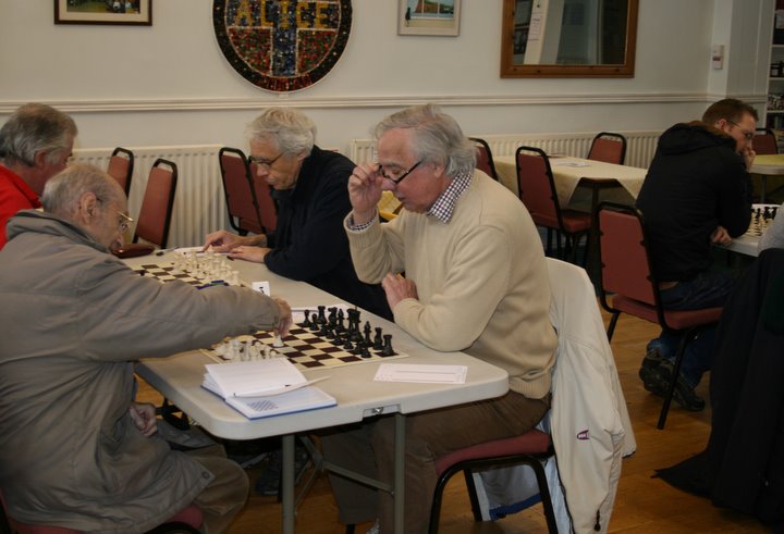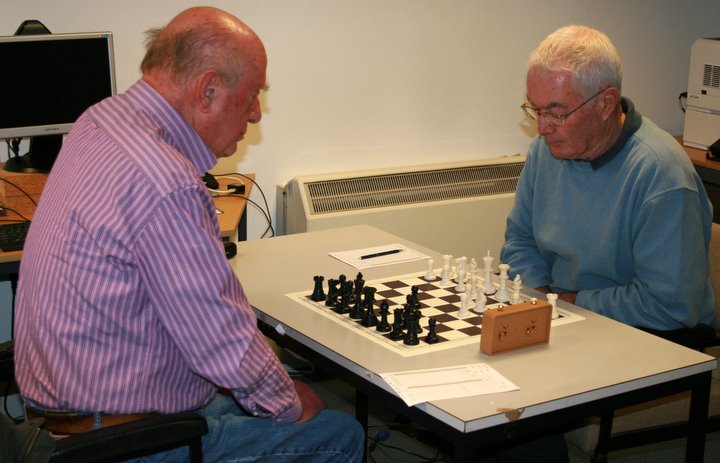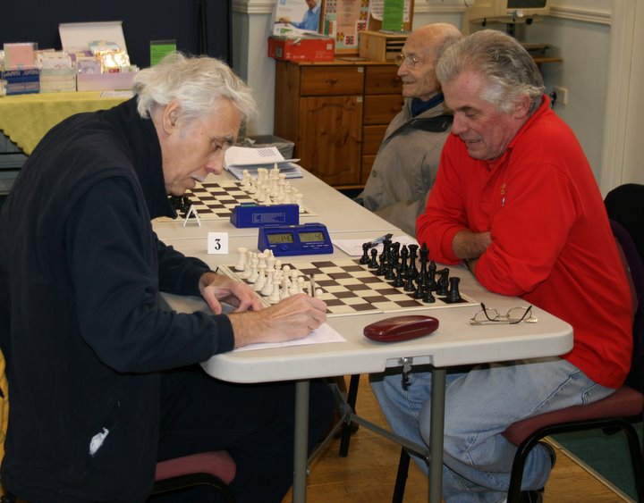 This policy proved successful as Fred held his own in both rounds against Alan Dowse who is c. 30 grading points higher, while Stephens and Wensley proved more than a handful at the top end. Only Jones failed to score, twice succumbing to Stone’s attacking skills.