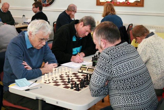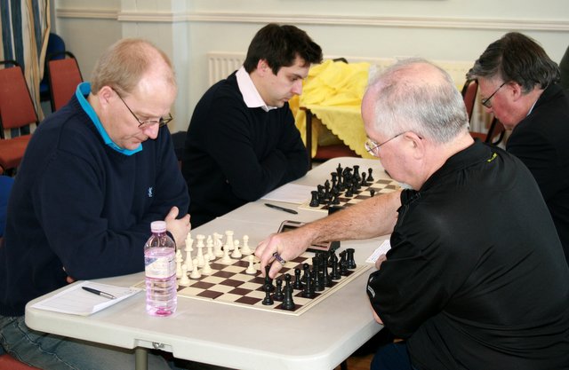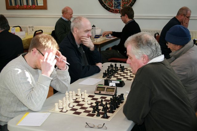 The League rules state that 1st division teams must not exceed a total grade of 640 (as distinct from Under-640, as in DCCA’s Div. 2). For this match, on Wednesday 13th February 2013, both captains were quietly pleased to have assembled a team of maximum strength, only revealed when team lists were exchanged. No pressure, then.