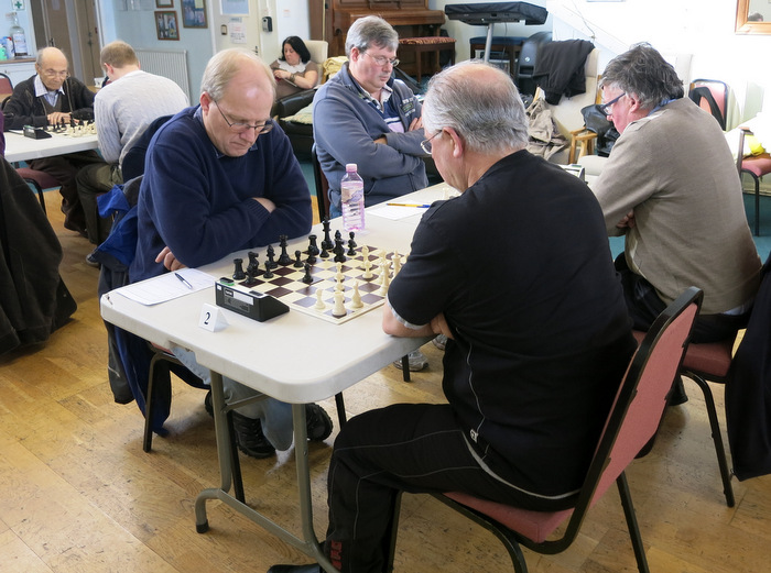 Meanwhile, Bob Jones, ever-cautious, had arrived at the club room an hour early, only to find the usual playing room had been double-booked and a full scale lecture was going on. After going into panic mode for 5 minutes, he worked out that the match could be held in the day-room using arm chairs to sit in, with extra cushions if needed. It was a little cramped for space but was workable. Once play started it was utterly quiet and neither group impinged on the other.