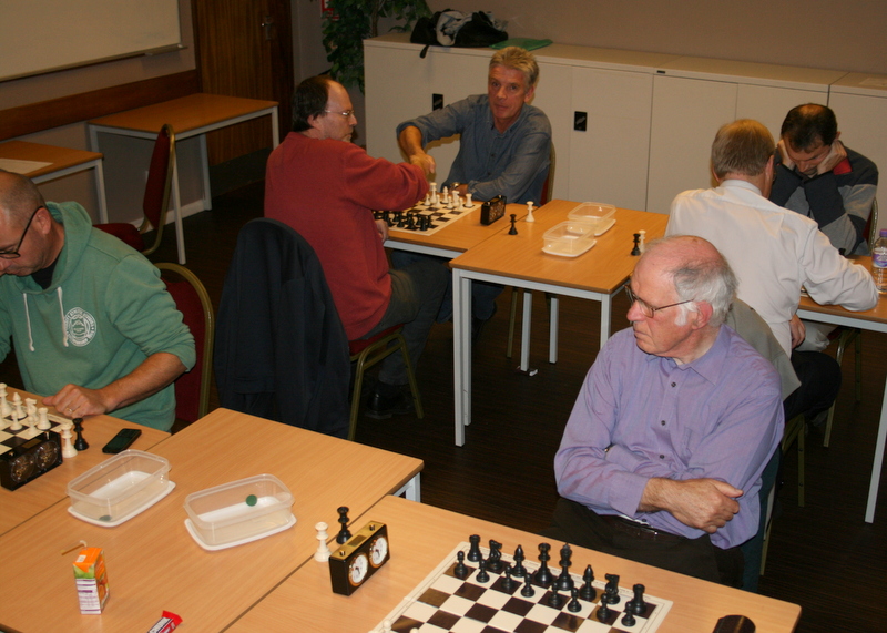Each year there have been a few more teams involved, with a new trophy added in each of the last 3 years to reflect the renewed interest. However, this year the number of teams entered dropped to 8, and several of these were not as strong as in recent years. In view of this, it was decided to change it to an all-play-all tournament of 7 rounds, with the tea break abolished to keep the timings about the same.