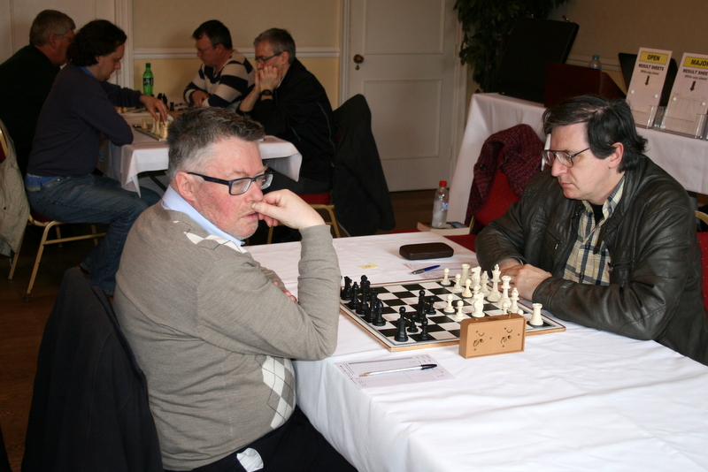 After a few words of welcome by the Union’s out-going General Secretary, the show got on the road at exacty 10 a.m. There had been a few late entries balanced by 4 even later withdrawals. The average grade of the 18 entries in the Open was 190 (ECF) which made this the strongest Open section for many years. There were 4 former champions involved, Arkell, Rudd and Mackle, of course, from recent years, but they were joined by Maurice Staples who had played in the event 18 times several decades ago, and became WECU Champion in 1979.