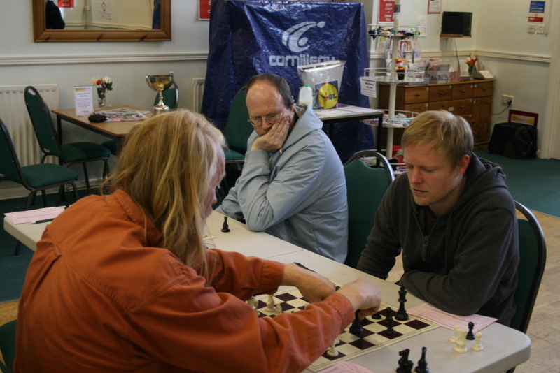 The results of the morning games, with its 5 draws, led to a certain bunching up of scores, behind the sole leader, Keith Arkell. In the last game to finish, Slade pushed Mackle to the limit, but with only a few minutes of extra time left, a draw was agreed, with Slade having the only piece on the board. The withdrawal of Fallowfield jr. meant that a bye was created and this fell to Maurice Staples. He got the full point, but had a meaningful game against a player with a bye in the Minor. By chance (no pun intended), this happened to be Hazel Welch, which meant that a former WECU Champion was playing a former WECU Ladies Champion, and that doesn’t happen often.