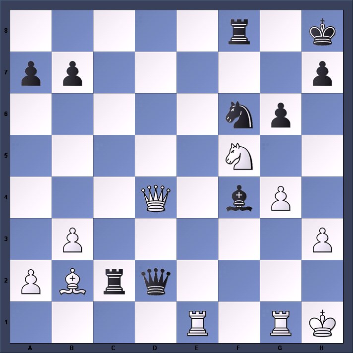 In last week’s position, White won by 1.Rg8+! RxR (forced) 2.Qf6+ and White will mate on g7.