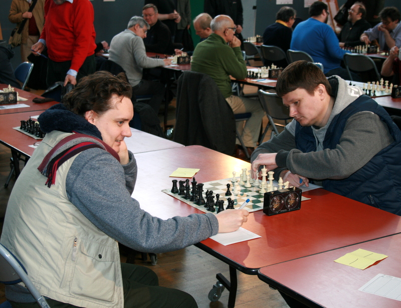 The final round found 3 players in the joint lead on 3.5/4. Arkell’s draw had been at the expense of John Wheeler, and Rudd’s was due to requesting a bye in order to play for his county on Saturday afternoon. However, the computer draw dictated that they should not not meet, and Arkell was paired against local player Graham Bolt, while Rudd faced the enigmatic Russian, Andrei Rozanov. Both won their games, and the two ECF titled players, master and pupil, shared the honours.