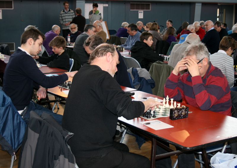 Open Section: 1st= Keith Arkell (243- Paignton) & Ezra Kirk (225 - Cheddleton). 3rd Stephen Meek (185 – S. Bristol). Grading prize: Cherupali Ramprasad (110 – India). Major Section (U-155): 1st Chris Purry (154 – Frome). 2nd James Hennefeld (141 – Downend). 3rd Howard Millbank (125 – Horfield). Grading prize; Anthony Carver (129 – Hanham). Minor Section (U-125). 1st Jason Blaxill (117 – S. Bristol). 2nd David McGeeney (123 – Bristol Cabot). 3rd Geoff Ainsley (123 – Calderdale). Grading prize: Grant Daly (100 – Downend). Junior Prize: Max French: (164 – Millfield School).