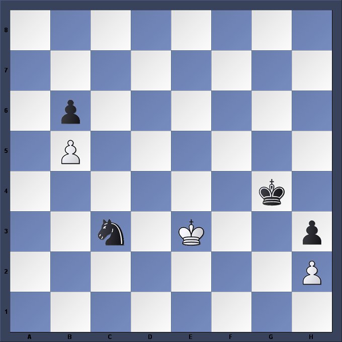 In last week’s endgame position, White’s correct move was 1.Kb2, preventing Black from playing 1…c3. He can now hold the 2 Black pawns while White will not be able to prevent a white pawn from queening.