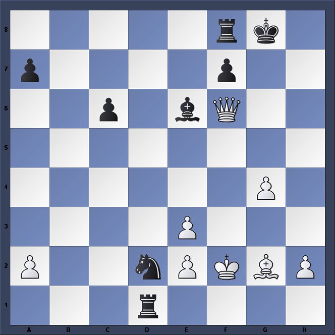 The ever-popular Frome Congress starts next Friday evening at the Selwood Academy. Last year’s winner was Grandmaster Matthew Turner, chess master at Millfield School, where he looks after a number of highly-promising juniors who are there on a chess scholarship. This was his last round game against another former West of England Champion, Jane Richmond (née Garwell), the only lady to have won the title, and many times Welsh Ladies Champion.