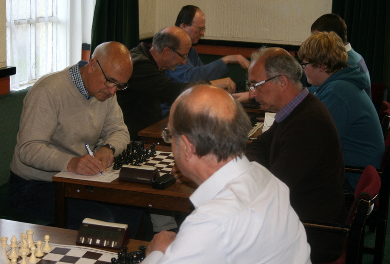 This was closely followed by another home match on Wednesday night, against Exeter in the E. Devon League Div. 1. This time the odds seemed to favour the visitors, with Barbara Newcombe, a newcomer this season to OTB chess, playing her first 1st team match for the Club. Her draw against the experienced Will Marjoram, in the face of a 40 point difference in their grades, seemed to inspire the others, the home side running out 3.5 - 0.5 winners.