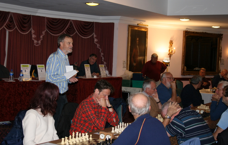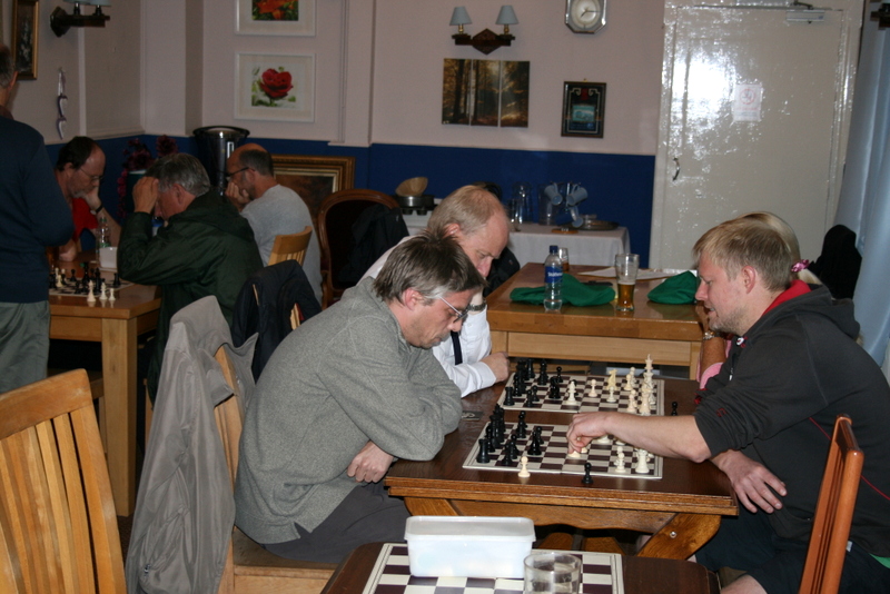 Keith has Richard Bates as his nearest rival, who may be taking heart from the struggles Arkell has had in his early games. In round 1 his game lasted 102 moves and nearly filled 2 complete scoresheets, while his next game took a mere 70 moves to wear down Graham Bolt. On the other hand, these marathons seem to be meat & drink to him; he’s content to sit at the board, motionless and fully focussed for hour after hour, and that’s an important quality in a top player - they all have it. No fidgets, fussing, watching other games - just the occasional break to get a breath of fresh air to clear his head, then back to the board.