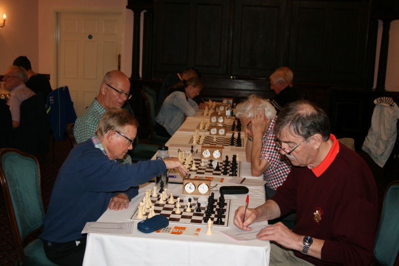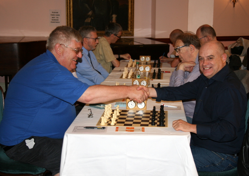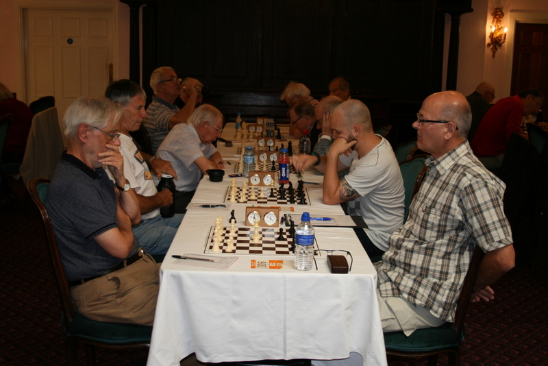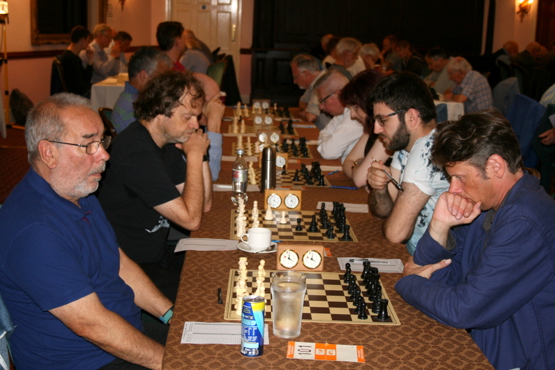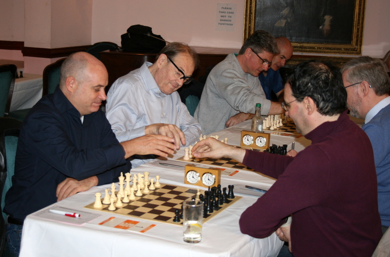 Final Rd: Keith Arkell in action against Ashley Stewart, with David Gostelow taking Black against Steve Dilleigh next to them.
