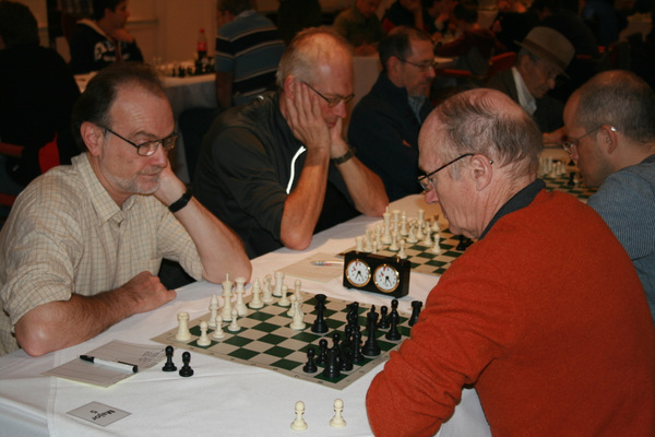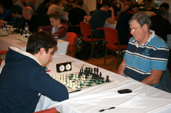 The Open Section was contested right up to the very last minute, with Alan Brusey and Steve Homer on top board, battling it out in a game of swinging fortunes in an otherwise empty room. In a complex endgame, it came down to Homer’s rook & knight facing a rook and 4 pawns. He managed to give up the knight for 3 pawns, but the 4th proved too much. In the end his flag fell in a lost position.