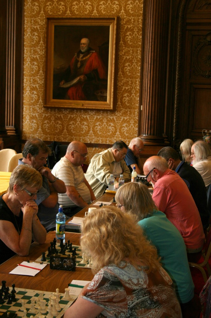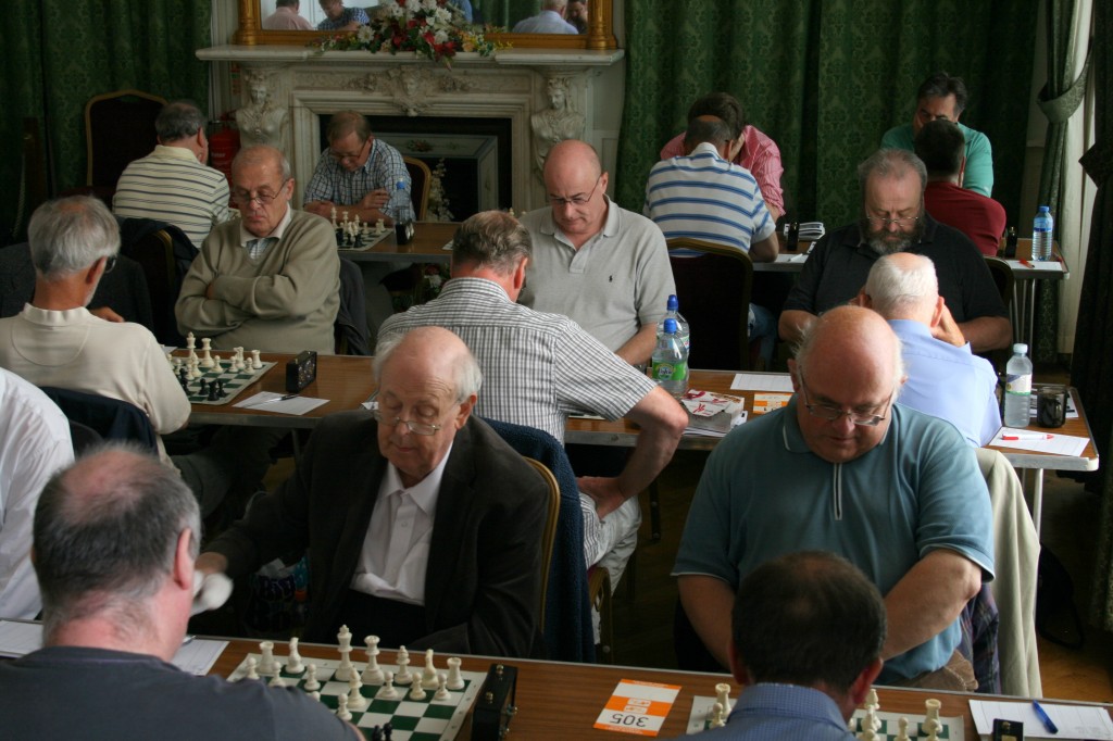 In no time at all, peace descended as play got under way. I then started the distribution of the Paignton Congress books, starting with Keith Arkell on top board.
