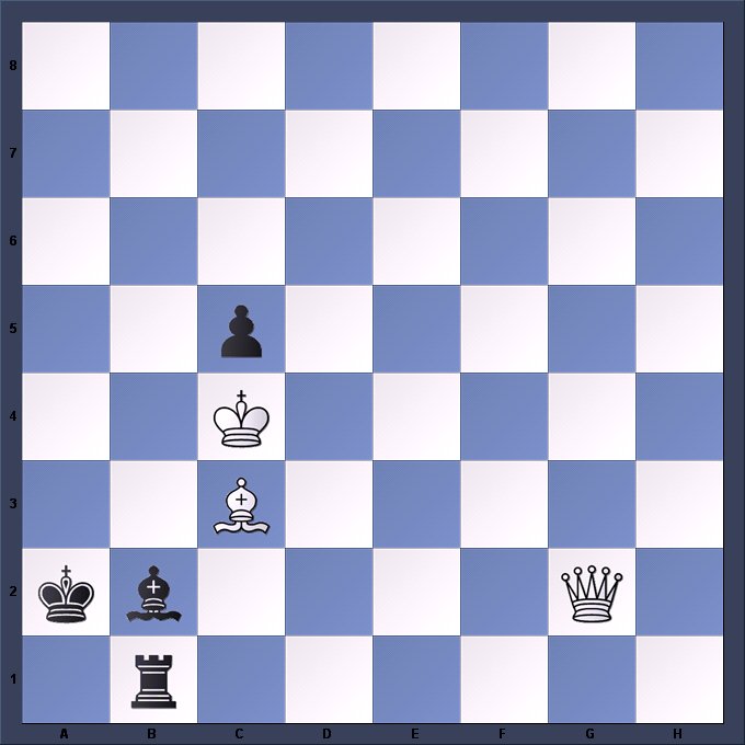 This 2-mover was one of 6 used in an evening problem-solving competition at the British Championships in Torquay, won by Giles Body of Lympstone.