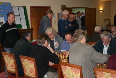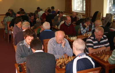 Devon’s annual pre-season chess funfest is the Team Blitz Tournament, hosted in recent years by Trefor Thynne in the Newton Abbot clubroom. Entries were up again, this time with 13 teams of 4 players, and 3 trophies to play for, The Thomas Cup for the overall winner, the new Hodge Cup (donated by Exmouth veteran Fred Hodge) for teams in the middle range (600 - 450 total grade) and a small trophy for teams whose total standard grade was under 450.