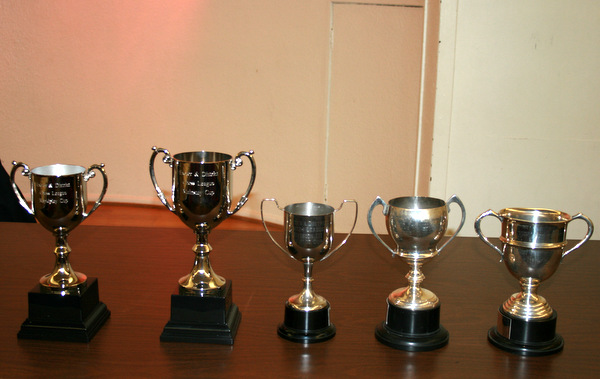 This year was marked by having all the cups available at the same time for presentation. This was due entirely to the efforts of League President, Brian Aldwin and Secretary Tim Paulden, who have invested considerable time and energy in getting all the existing trophies engraved up-to-date, plus the purchase of 2 new trophies to replace lost ones. The reduction in the number of leagues from 4 to 2, has been compensated for by having extra prizes in the new divisions - the equivalent of grading prizes in a congress.