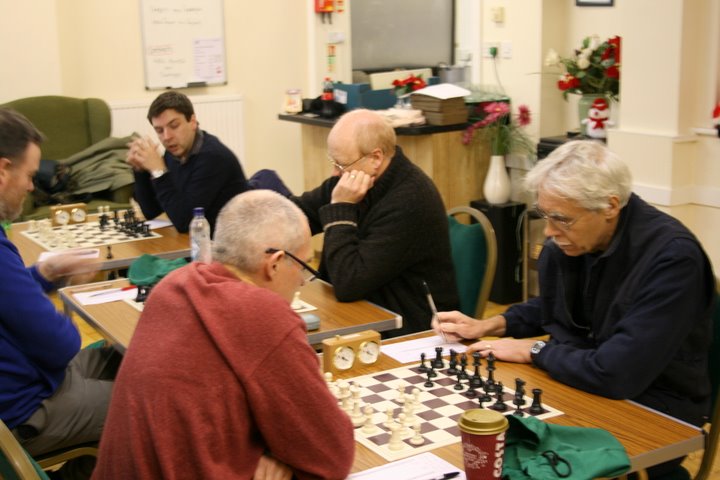 On the top 2 boards, John Stephens and Brian Hewson, seemed to have their games under control throughout, and barring mistakes looked destined to win, which left the captain looking for a halfpoint from Bds 3 & 4. However, Gosling, on 3, looked to be on the back foot, the more so as the game went on, with pawns dropping left and right. Meanwhile, Oliver Wensley, playing in only his 3rd ever match as an adult, was giving his experienced opponent much to think about, until, in a finely balanced endgame, his opponent, with 2 minutes left on his clock and c. 10 moves to make, offered a draw. Scenting a win, he declined, but the time control was reached and things gradually turned around until he was forced to resign, leaving the match drawn 2- 2.