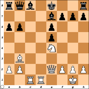 In the following position from Bd. 1, White has played the Morra Gambit and Black has grabbed all the pawns on offer. From the resulting position below, White is well-developed while Black seems to be somewhat cramped on the back rank. However, Black is comfortable with his queen on b8 and he does, after all, have two extra pawns and the bishop pair. His next 2 moves are to castle and then play f5, mobilising the extra central pawns, which ultimately prove decisive.