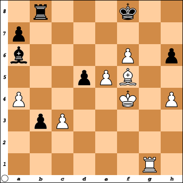 In the next position, Black had less than 2 minutes to reach the time control on move 40 and offered a draw. White declined, sensing a win, but the 2 unopposed pawns soon broke forward; the time control was safely reached and pawns were impossible to stop. Black win.