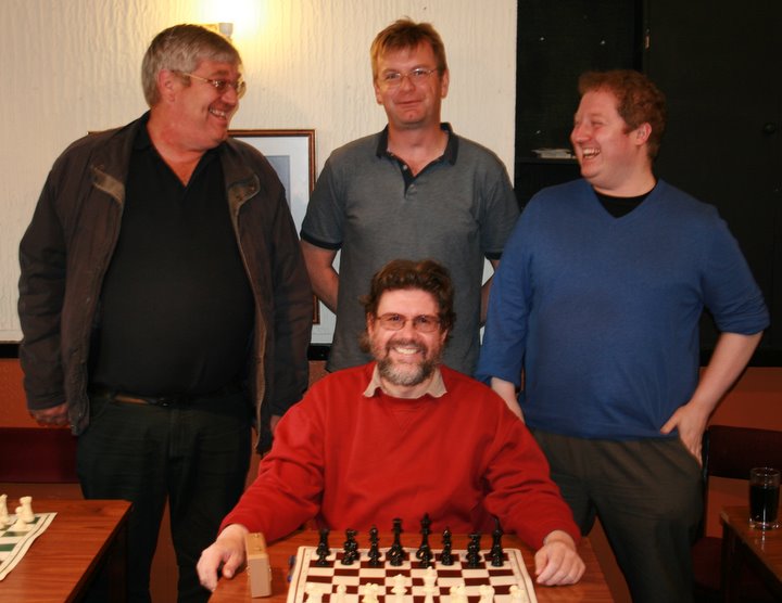 Meanwhile, Exmouth’s Abbott and Stephens, both playing with the Black pieces, had the initiative in their games - the only question was whether this could be converted into points as the allegro 15 minutes after move 30 raced by. On Bd. 3 Paulden was short of time throughout the game and eventually his flag fell, but in circumstances where it was debatable whether Stephens had enough material to win. The subsequent discussion involved all present and the finest of fine points of the Laws of Chess relating to these situations were debated. Meanwhile, Graham Bolt resigned after losing a piece in the ending of a game in which Abbott had held the initiative throughout, but was in danger of losing it as Bolt’s undeveloped pieces eventually sprang out of the traps, a fact that allowed the Stephens-Paulden game to be agreed a draw without affecting the result of the match- Exeter 1.5 - 2.5 Exmouth.
