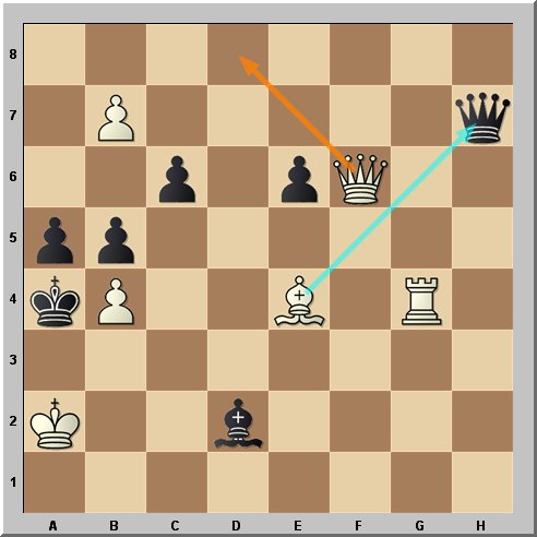 Due to a mix-up, the diagram given on 18th June was incorrect and did not match the solution given the following week – apologies for that. The solution to last week’s problem was 1.Bd5+ Pxd5 (forced) 2.Qf5 mate.