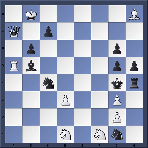During the recent London Chess Classic, while most attention was directed at the nine chosen elite players in the top section, there was much going on among the massive Open Section, where the entry of 222 included a number of grandmasters and titled players from around the world. Paignton resident, Keith Arkell had several draws in the early rounds, but wins in rounds 6, 7, and 8 projected him up to top board for the 9th and final round, where he was one of only a handful who had a chance of winning the £2,500 1st prize. This caused him to play for a win, and in over-pressing led to a mistake which cost him the game and an appearance in the prizelist.