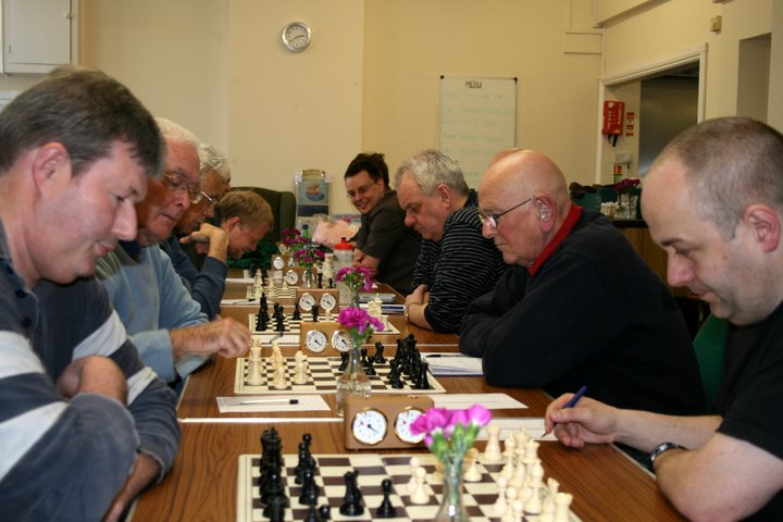Tony Hart was running Ivor Annetts ragged for most of the game, but misjudged his defences, allowing his opponent back into the game and he succumbed to a strong kingside attack. Shaw fell for a sucker punch in the opening, allowing Bxf7+ to an uncastled king with a knight hovering to follow it up. The “gift” was declined and he got back to a pawn up going into a bishops of opposite colour endgame, which couldn’t be forced. Gosling overlooked what appeared to be a forced mate in 2 and allowed his opponent to get in a long series of checks and a draw was agreed, making 3 results that got away. Wensley was always comfortable against Hewson and it ended up with K+equal pawns with no advantage to either side. Stephens’ position was equal up to the point where he inadvertantly lost his bishop. His only compensation was for his queen to have total domination of the white squares and a long series of checks that again ended in a draw. At the outset, Hurst was determined to play quickly in the opening in order to avoid the risk of blundering pieces away in time trouble at the end - a plan that didn’t quite work the way he intended. Never the less, Edgell knew he was in danger at several points and had to be at his best. All in all, it was a case of ’so near and yet so far’ from a fabulous result.