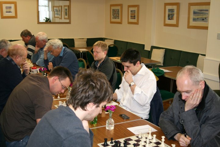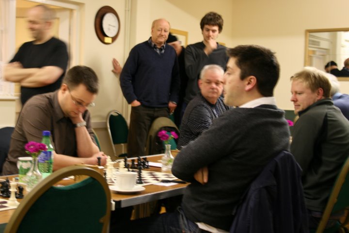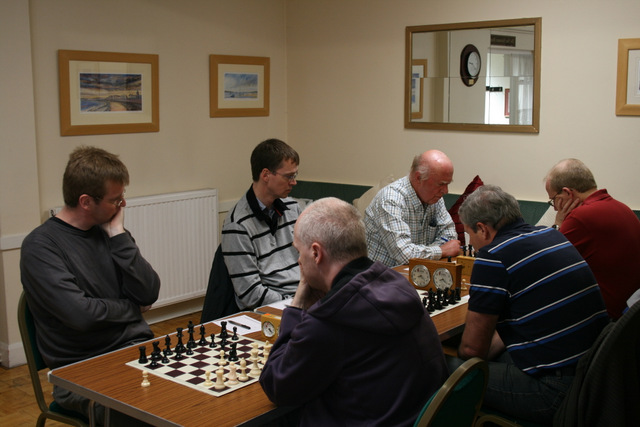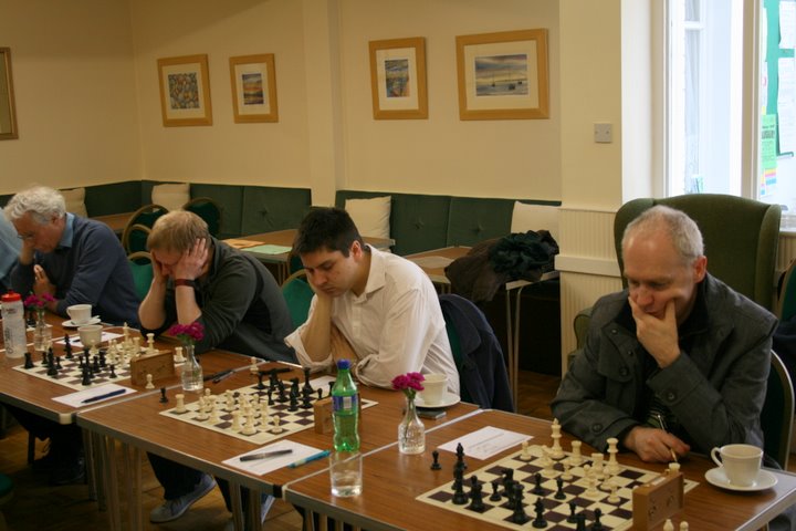After 2 hours play there were some very worried faces on the Tiverton side, as the home side looked to be comfortable-to-better on 5 boards. However, converting any advantage to a full point proved impossible.