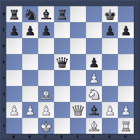 In this position, White is 2 pieces down, but at least his forces are active. Can he force the issue before Black completes his piece development?