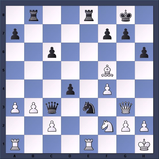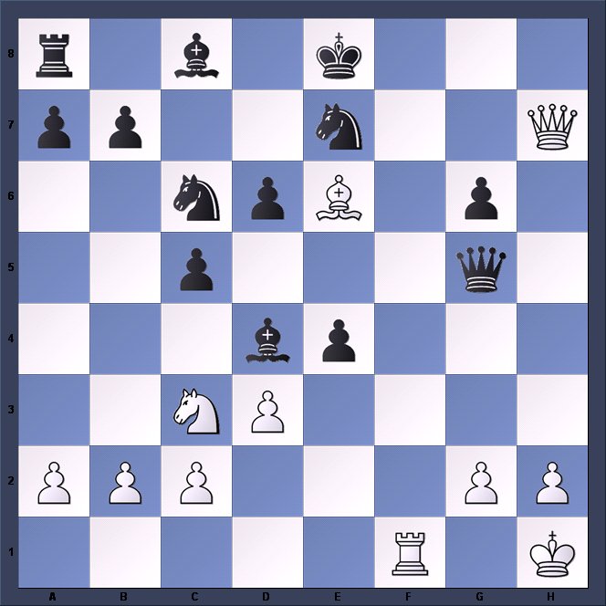 Last week’s position ended with Black’s unanswerable combination 1…Qh1+ 2.Bxh1 Nh2+ 3.Ke1 Rg1+.