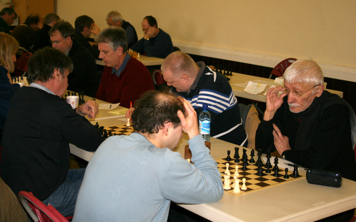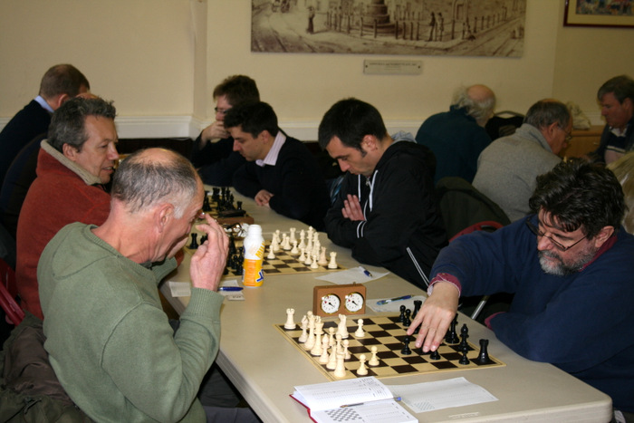 The first result in was a quick draw between former colleagues Regis and Bellers, but closely followed by a win for Jonathan Underwood, and Devon were never headed from then on, although never by more than 1 or 2 points. Eventually, with the last game in progress, Devon led 8-7, but with Stephens down to his last 2 minutes, abandoning his recording and having to move almost instantly in a complex unclear position. Yet somehow he managed to coordinate his remaining 3 pieces, Queen, rook and a knight had hadn’t moved for 44 moves, into a mating net. Match won 9-7.