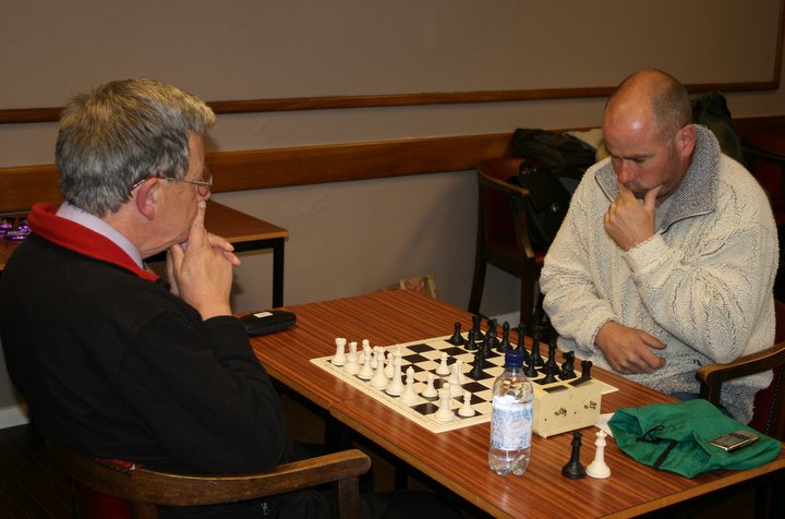 This policy proved successful as Fred held his own in both rounds against Alan Dowse who is c. 30 grading points higher, while Stephens and Wensley proved more than a handful at the top end. Only Jones failed to score, twice succumbing to Stone’s attacking skills.