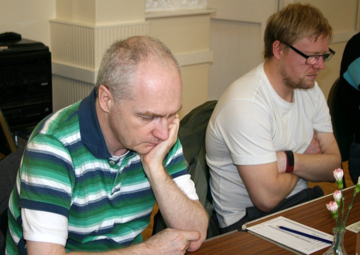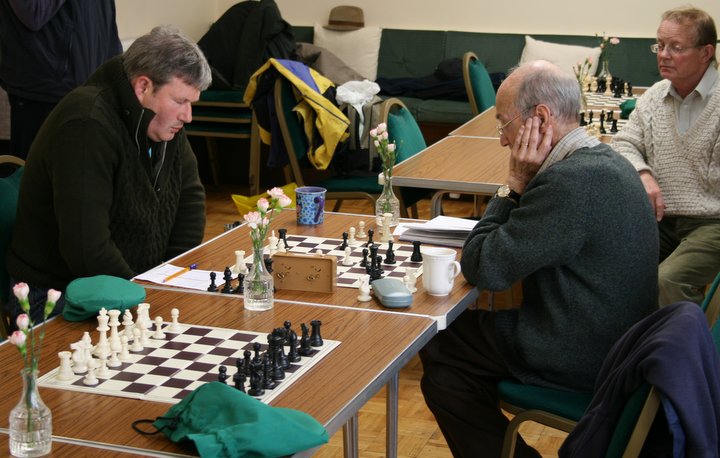 Tindal played the White side of a Closed Sicilian very quickly and a rook & pawn ending was soon reached, with Jones 2 pawns up, but it needed careful play and in the end it boiled down to a single pawn that couldn’t be prevented from queening.