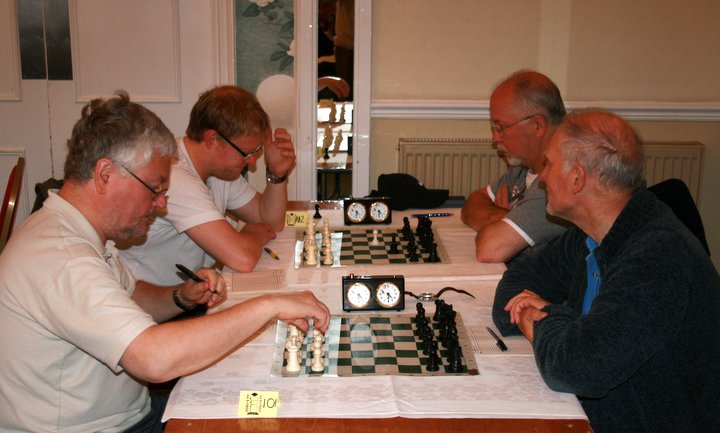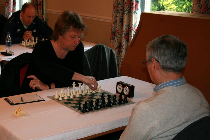 The last game to finish in the hall was Richardson - Shaw, where the latter was a pawn down, but their bishops were on opposite coloured squares which tends to minimise this disadvantage, and a draw was agreed.