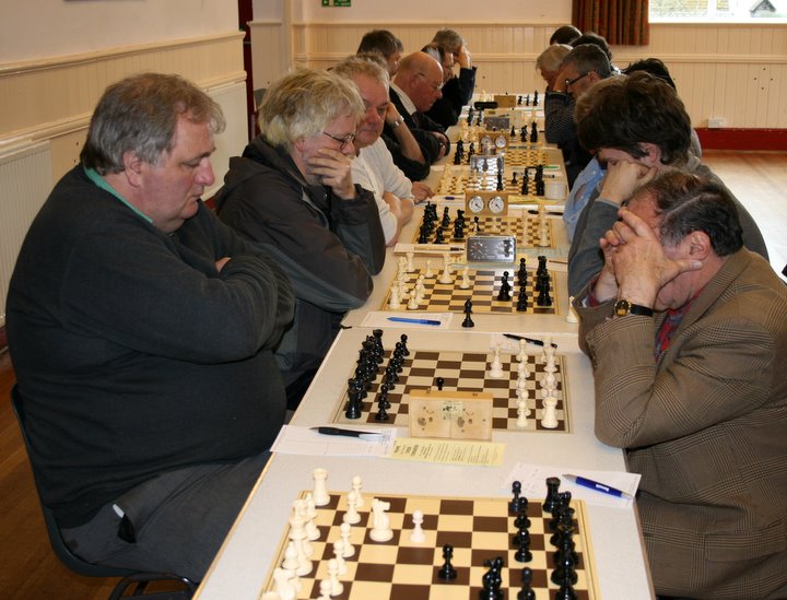 There had been talk in the week of the chances of Cornwall actually winning a share of the WECU Championship, bearing in mind their earlier win over Hampshire, who in turn had beaten Somerset. However, this could only happen if, like Hants, Somerset under-estimated their task and sent an under-strength team against a full-strength Cornwall. As things turned out, it was Cornwall who were lightweight by their own standards and Somerset were taking no chances at all, fielding several former WECU Individual Champions. The difference was pointed up on Board 10 where Somerset had Richardt (180 grade) 50 points ahead of his Cornish opponent. In fact, they outgraded Cornwall by an average of 32 points on every board.