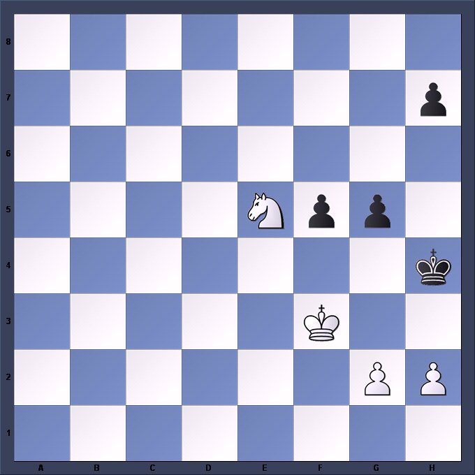 This position arose in a Rd. 9 game in the recent British Championship. Black has no pieces left, but his 3 pawns are all connected and can be shepherded forwarded by his king. He also knows that if he can manage to swap off 2 pawns each then White cannot win, but he must first get those pawns moving, as White will want to leave his where they are. To this end he plays …h5. Good or bad?