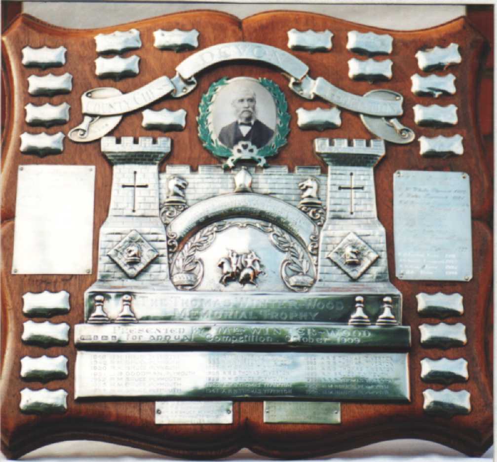 The Winter-Wood Tournament is a knockout competition run during the summer months, and is open to the Champions, or their Runners-Up, of clubs affiliated to DCCA. The prize is Devon’s most ornate and valuable trophy, donated by the widow of Thomas Winter-Wood of Brixton nr. Plymouth, he being a leading light in 19th century Devon chess.